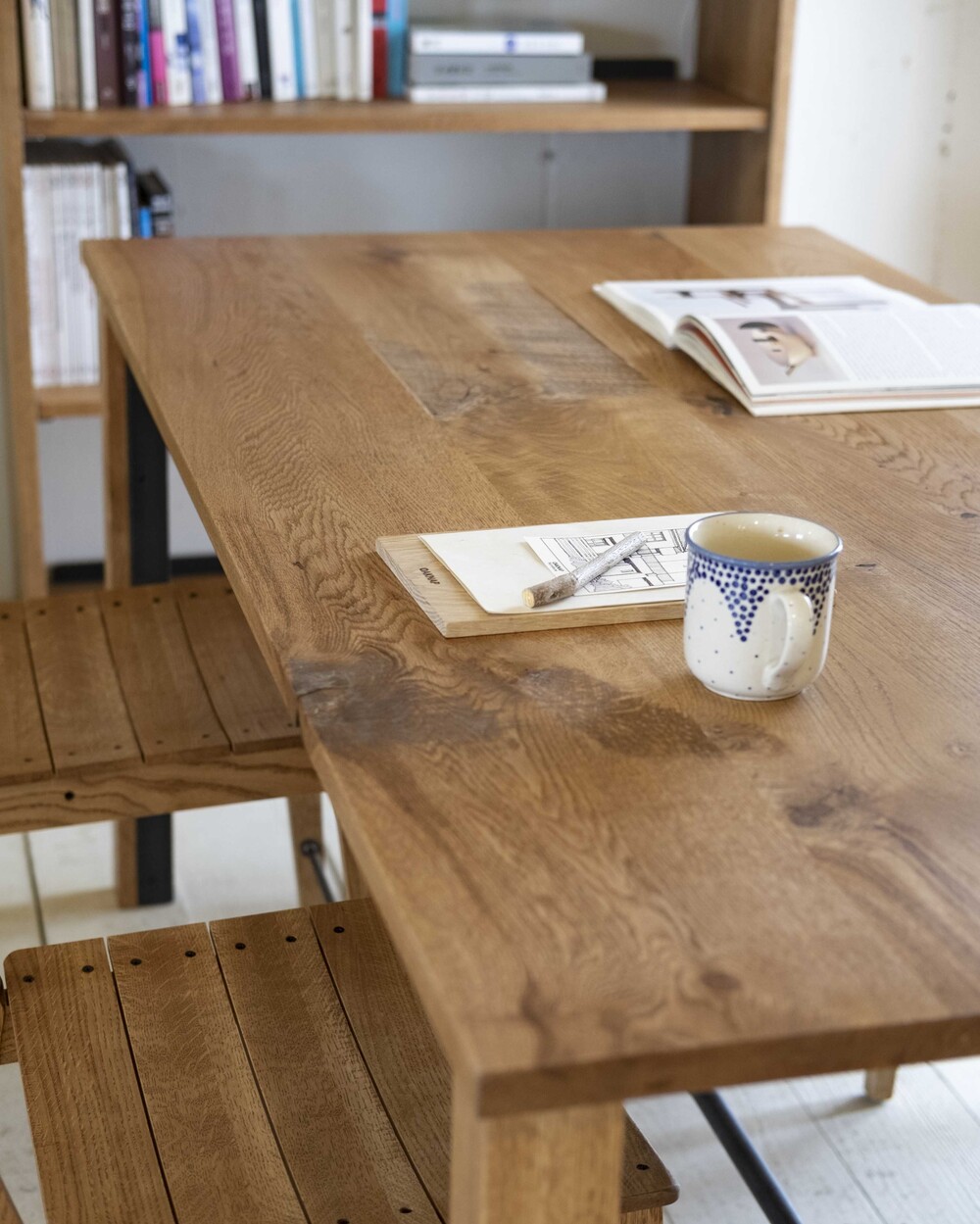 다만, 이런 생각들이 모든 사람들에게 받아들여진다고 보진 않습니다. 옹이의 파임과 제재 시 남겨진 톱자국, 단차 등은 기성 가구에 비해 상판이 부분적으로 평형하지 않으며, 천연성분만을 사용한 도장은 세월에 따라 색이 바뀌며 자주 닦아줘야 합니다.