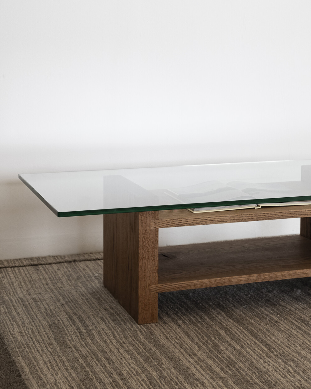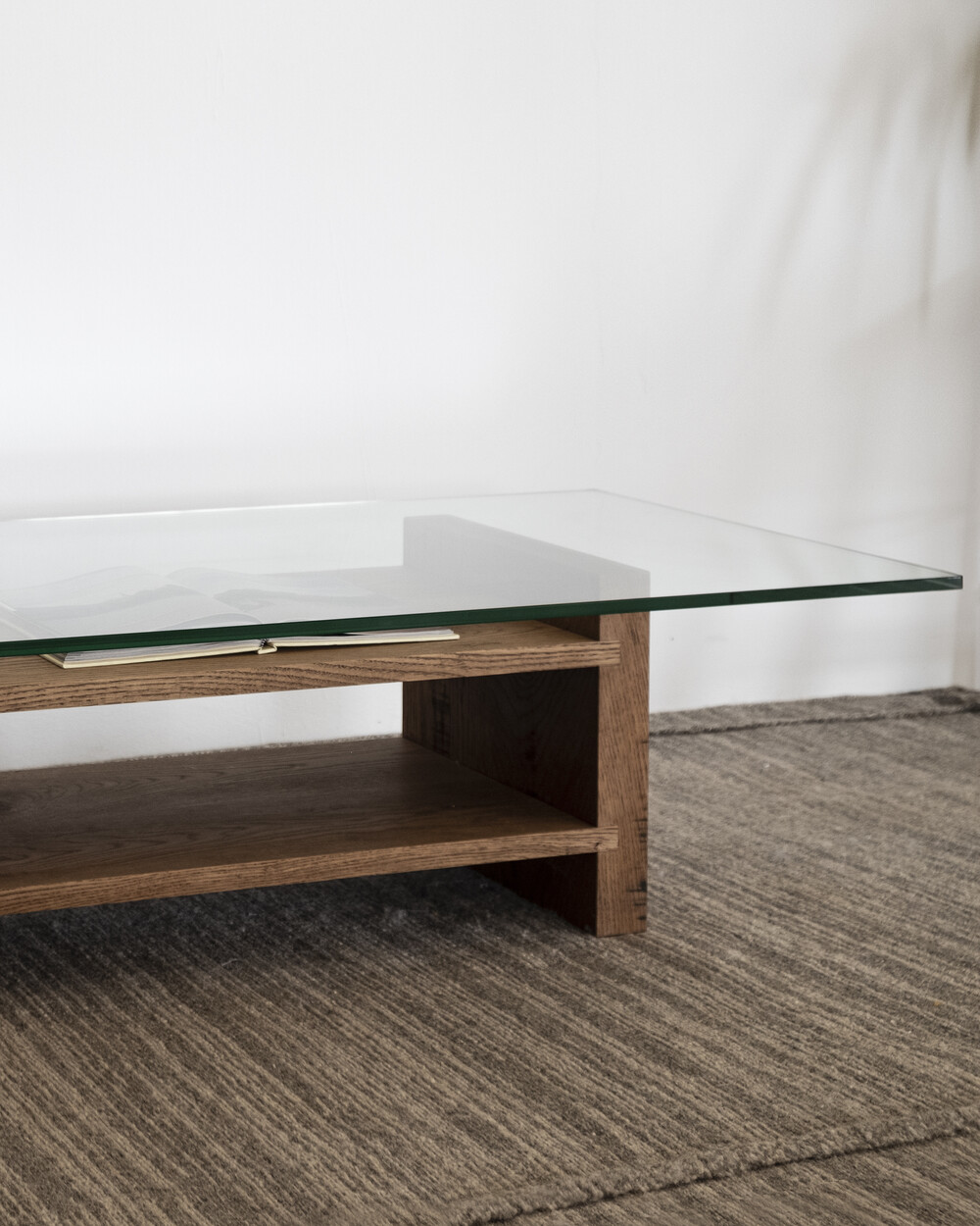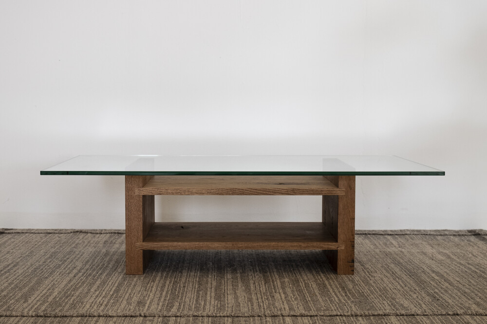 무늬목과 시트지로 마감되어 요즘 유통되는 대부분의 가구와 달리 덩어리 나무를 가져와 고유의 특징들을 살리며 작업한 결과 강인한 참나무의 표면을 나타낼 수 있었습니다.