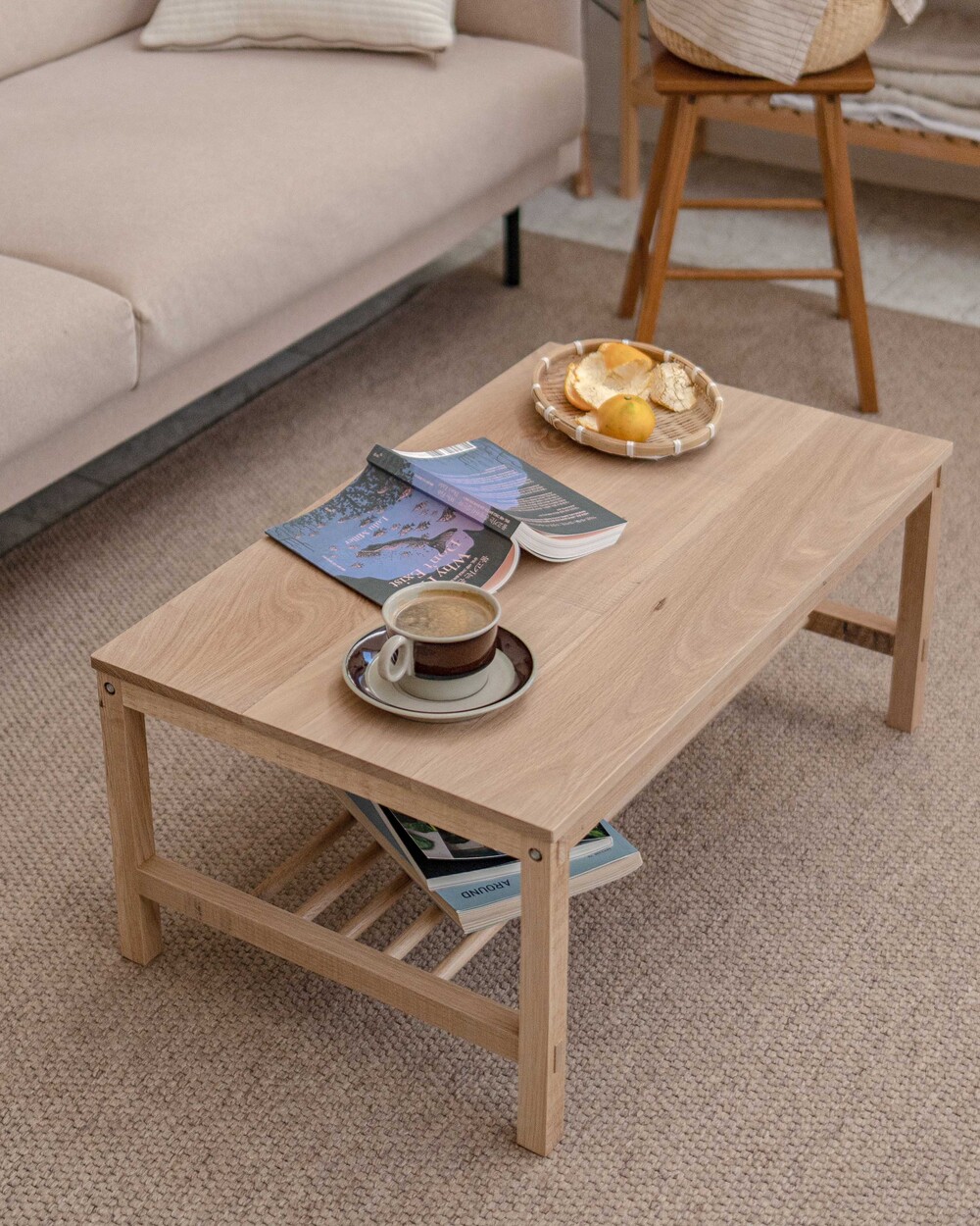 다른 OAKNAP 가구의 천연 오일 마감과 달리, 거친 표면을 남기기 위해 친환경 바니쉬로 마감되었음을 알려드립니다.