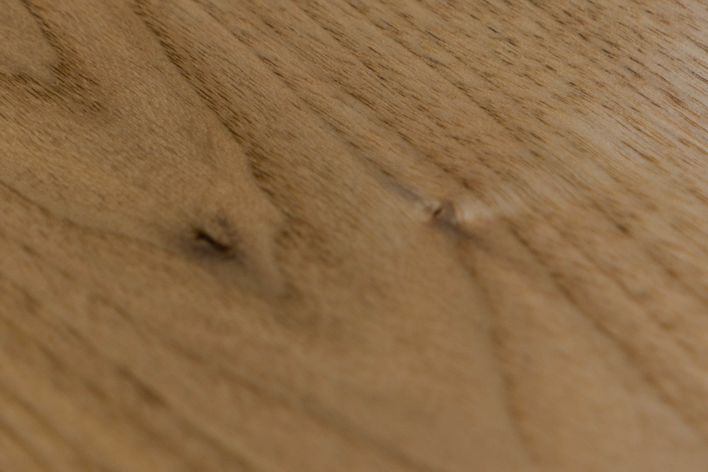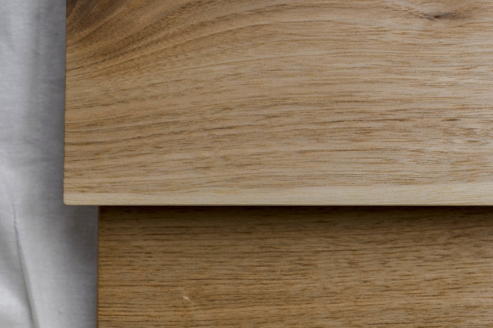 무늬목과 시트지로 마감되어 요즘 유통되는 대부분의 가구와 달리 덩어리 나무를 가져와 고유의 특징들을 살리며 작업한 결과 강인한 참나무의 표면을 나타낼 수 있었습니다.