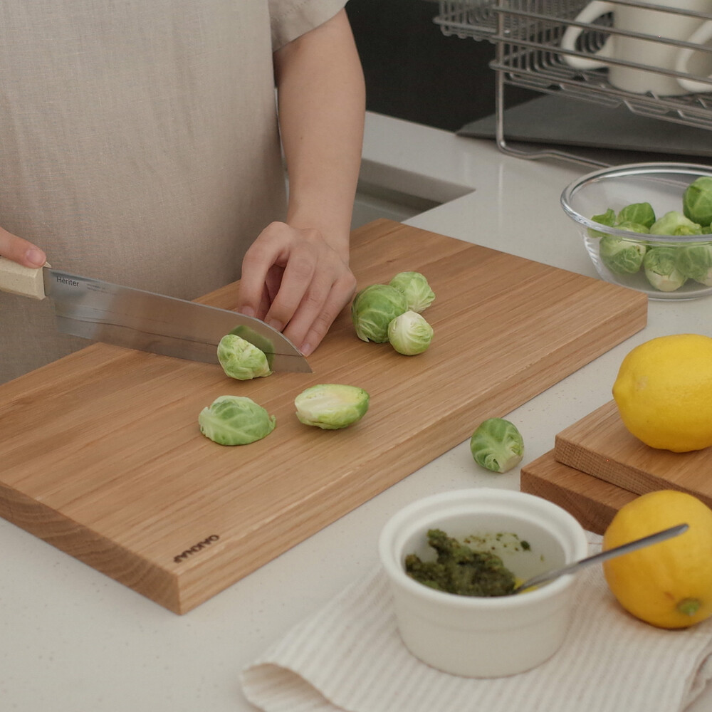 세상엔 참 많은 모양의 도마들이 있습니다. 근데 왜 내 마음에 쏘옥 드는 깔끔한 도마 찾기는 이렇게나 힘들까요? 그래서 제작했습니다. 밝고 간결한 나무결을 가진 직사각형의 군더더기 없는 도마를 :)