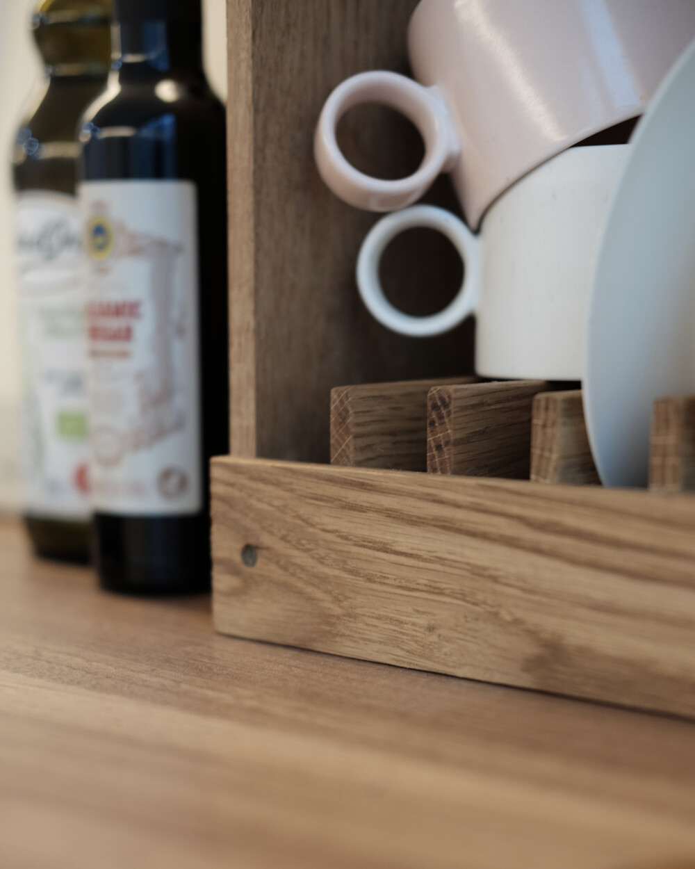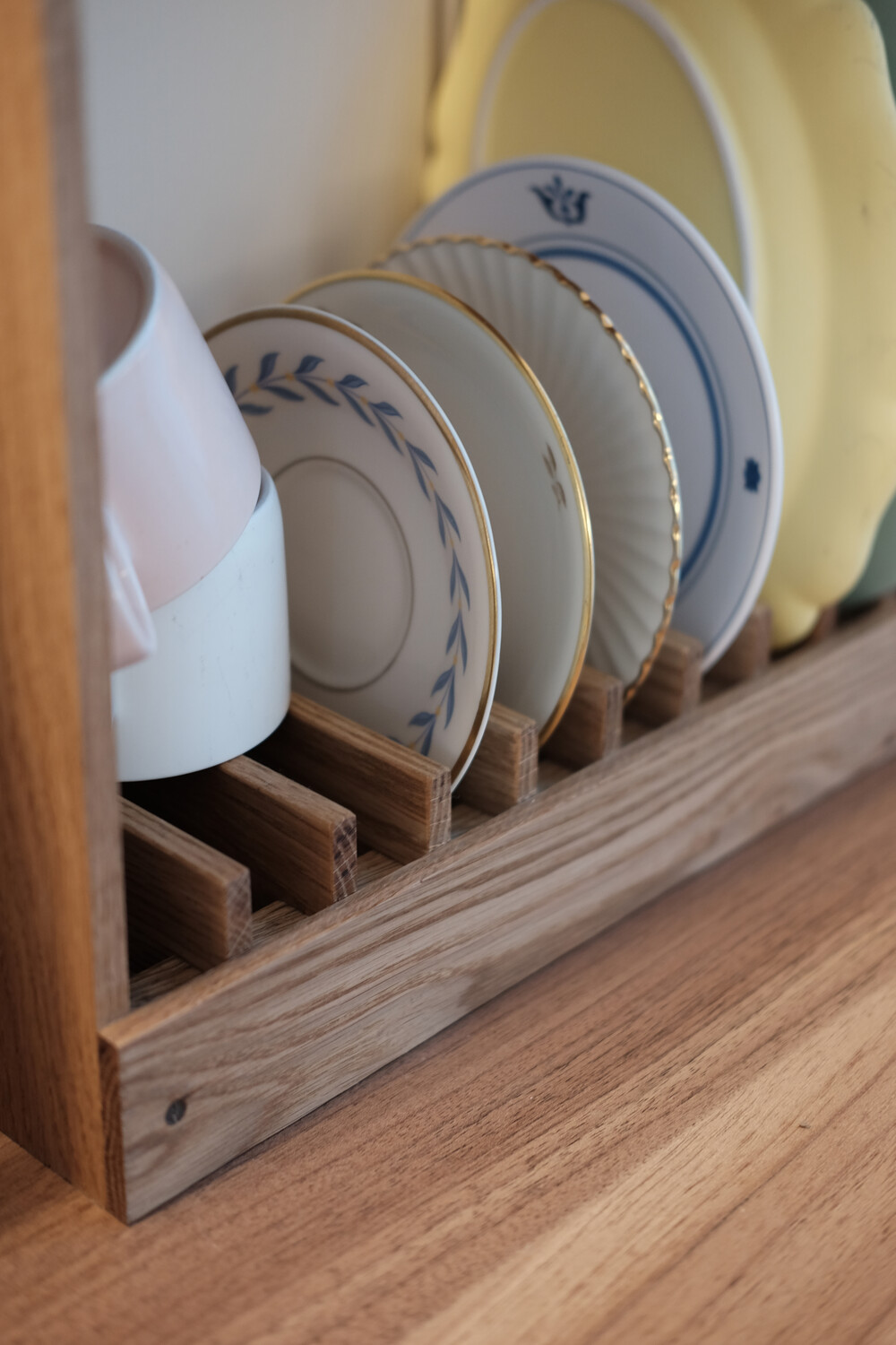 낮은 상부장으로 인해 고민이셨던 고객님들의 요청에 좀 더 아담한 사이즈로 제작하게 된 오트 플랜트 디쉬랙입니다.
