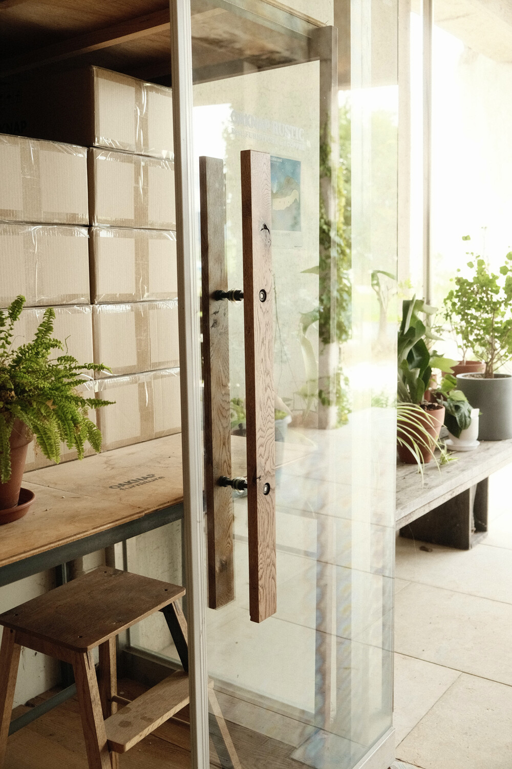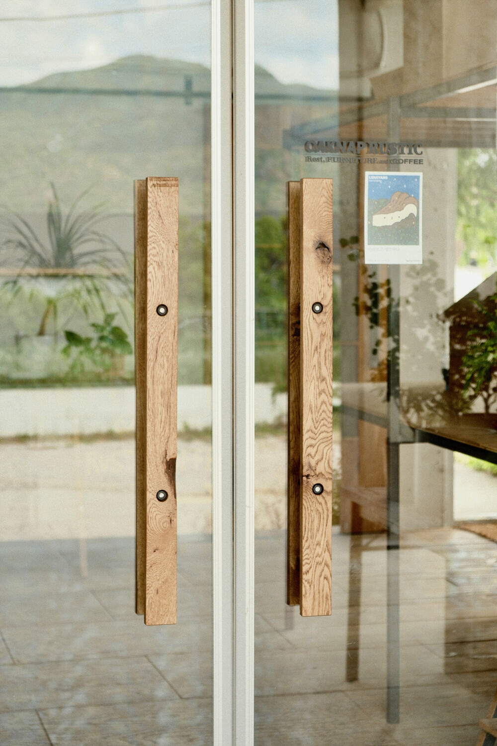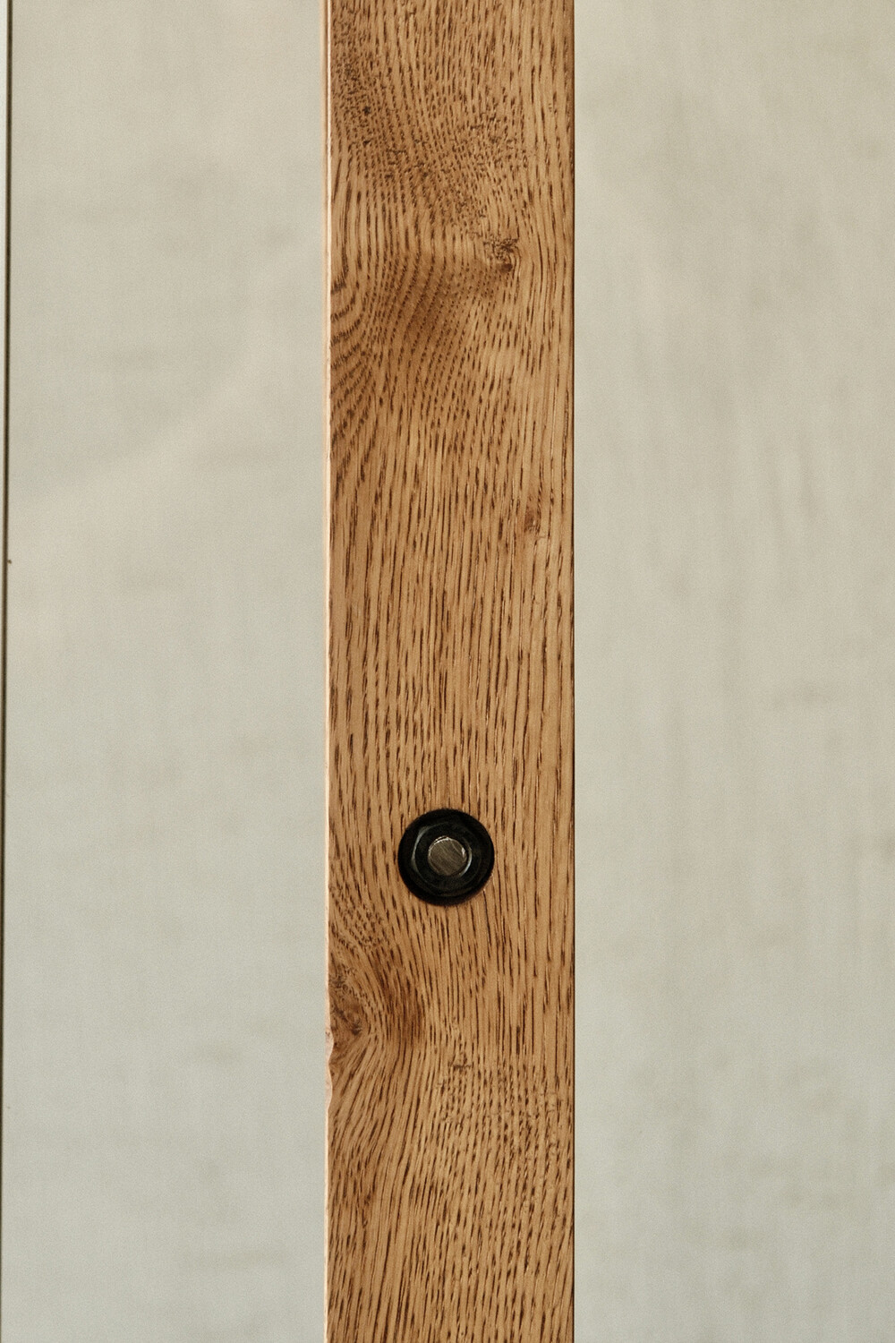 무늬목과 시트지로 마감되어 요즘 유통되는 대부분의 가구와 달리 덩어리 나무를 가져와 고유의 특징들을 살리며 작업한 결과 강인한 참나무의 표면을 나타낼 수 있었습니다.