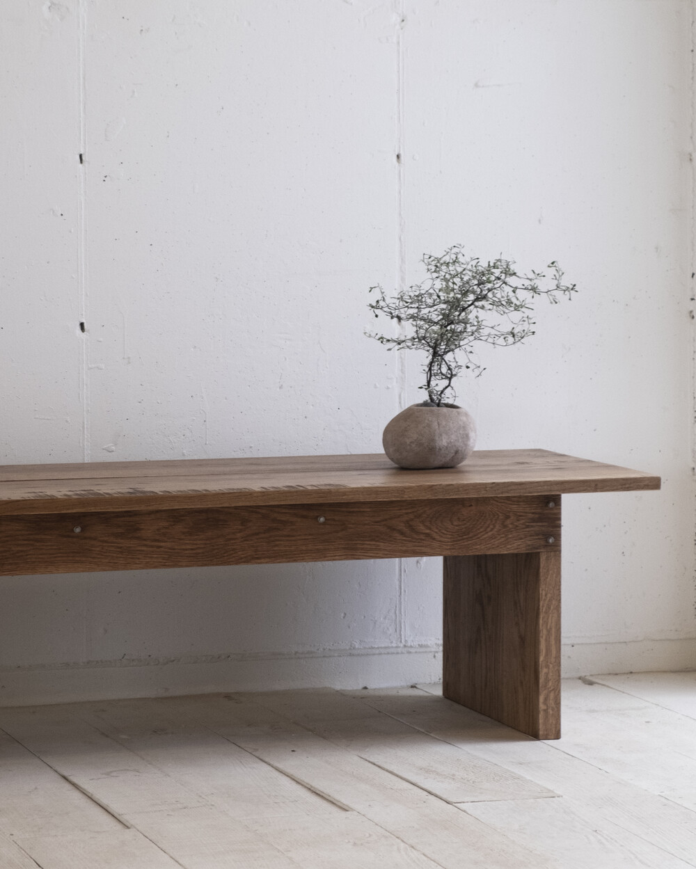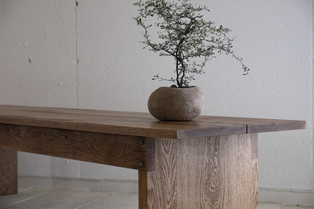 다만, 이런 생각들이 모든 사람들에게 받아들여진다고 보진 않습니다. 옹이의 파임과 제재 시 남겨진 톱자국, 단차 등은 기성 가구에 비해 상판이 부분적으로 평형하지 않으며, 천연성분만을 사용한 도장은 세월에 따라 색이 바뀌며 자주 닦아줘야 합니다.